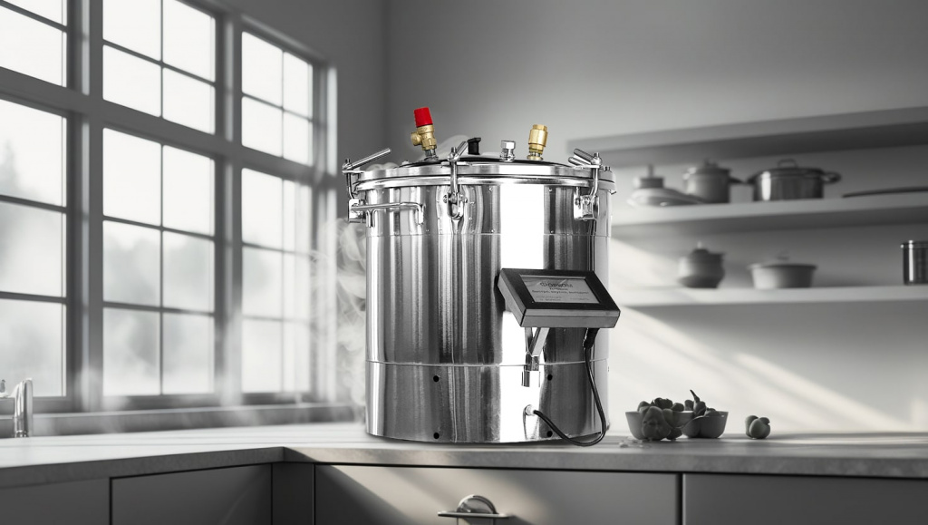 Широкое горлышко позволяет загружать даже 3-литровые банки, что редко встречается у компактных автоклавов. Сенсорная панель проста и понятна — вся информация отображается на дисплее: текущая температура, давление и оставшееся время. Благодаря эргономике, пользоваться автоклавом комфортно даже тем, кто впервые сталкивается с подобной техникой.